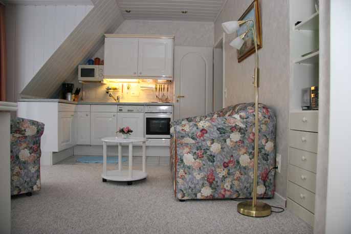 Ein Teil des Wohnzimmers mit Blick zur Küchenzeile